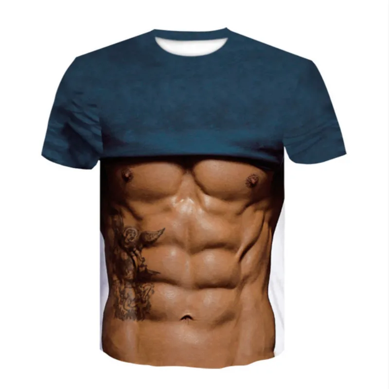 Новинка 2021, Мужская футболка с 3D-принтом в виде мышц живота, уни...