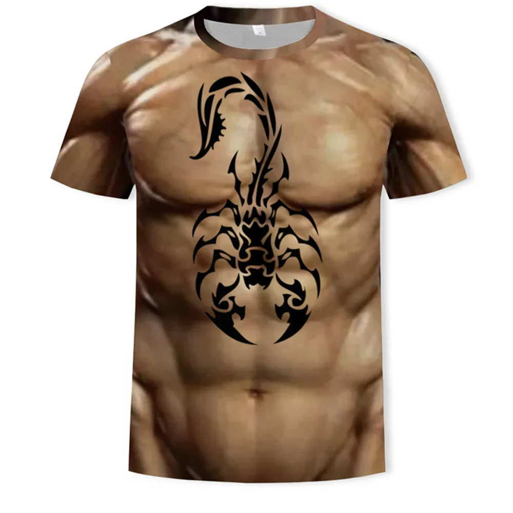 Мужская летняя футболка с 3D-принтом, имитация мышечных татуировок,...