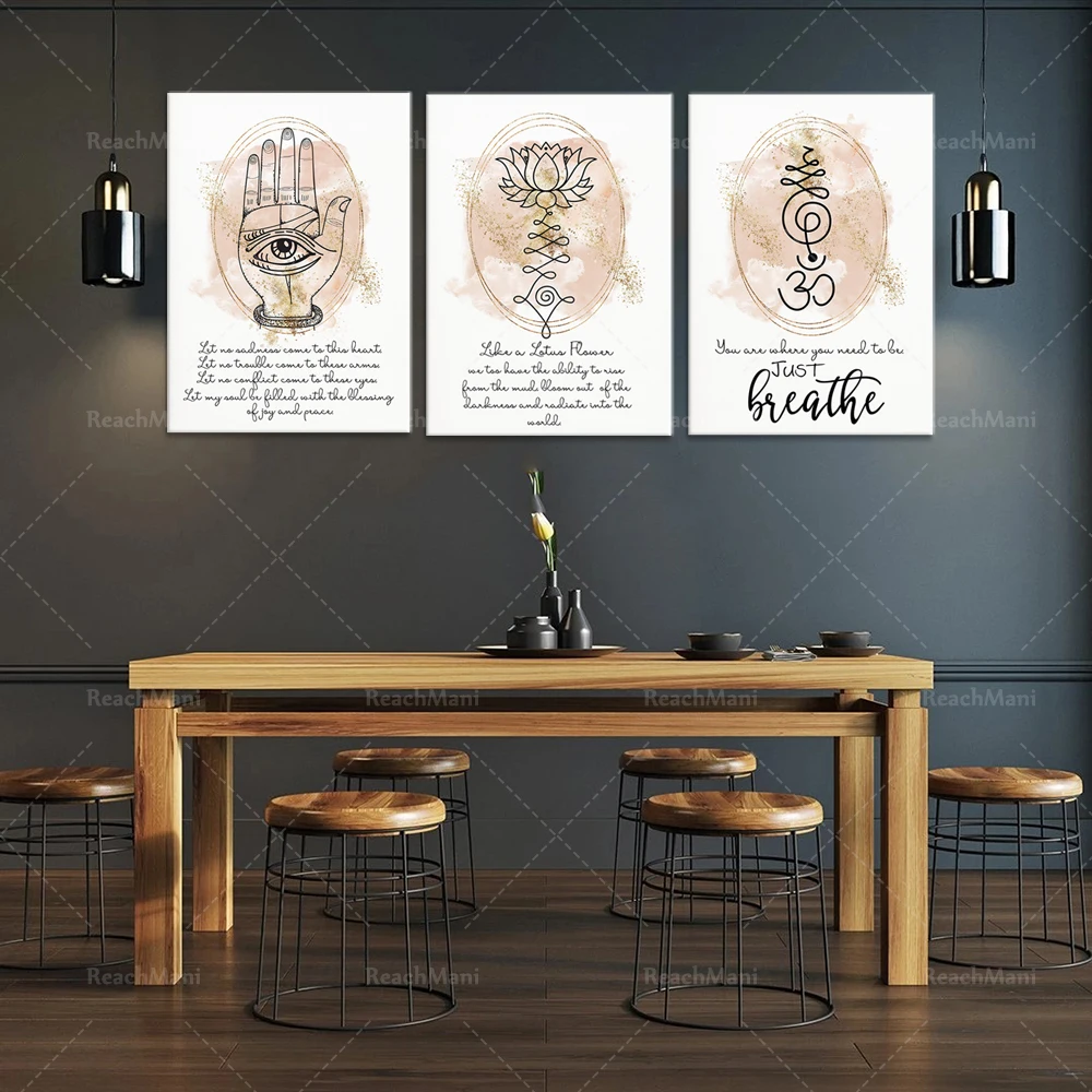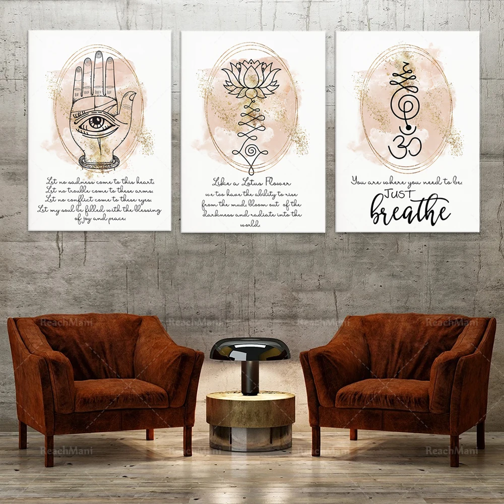 Настенные художественные принты для йоги, надписи на стену, подарок для медитации, грантитул, цитаты Будды, настенное искусство, декор Ом, рука Хамса, партия