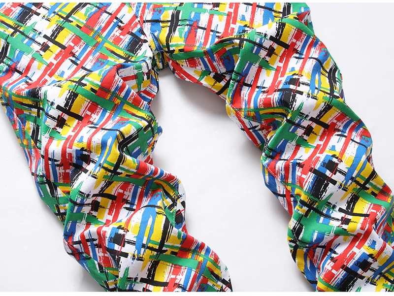 Мужские Y2K цветные джинсы с принтом модные штаны-карандаш стрейч из денима в полоску клетчатые облегающие брюки