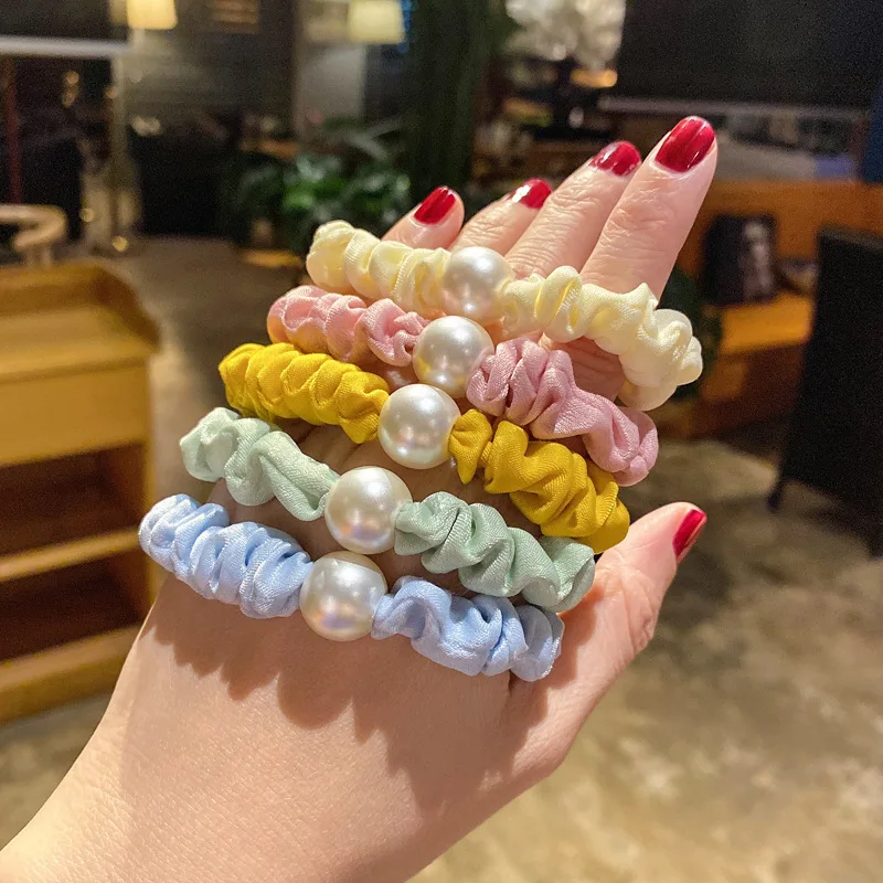 Резинка для волос женская, с большими жемчужинами, разноцветная, эластичная