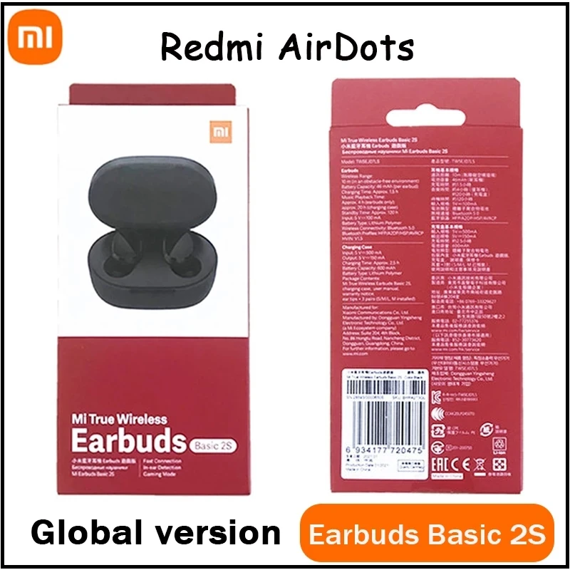 10 шт./лот оригинальные беспроводные наушники Xiaomi Mi True Basic 2s Redmi Airdots 2s TWS Bluetooth гарнитура игровой режим сенсорное управление
