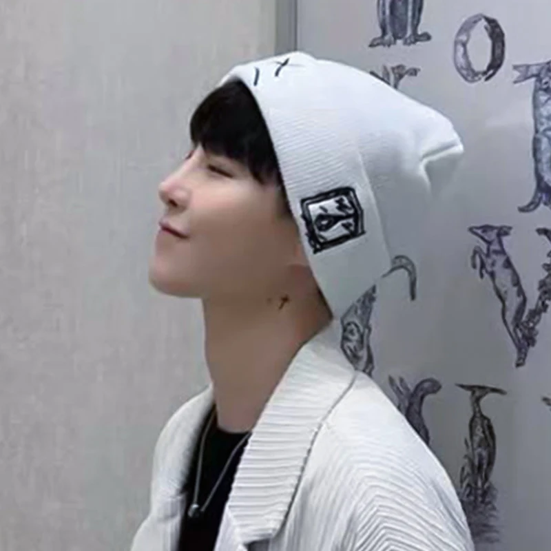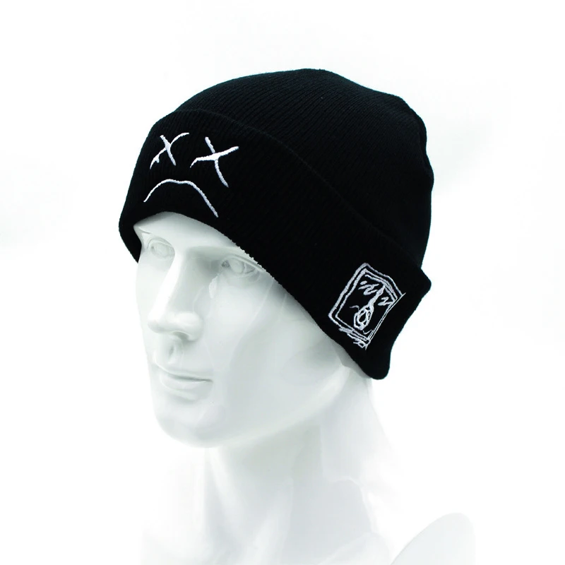 Шапка-бини, вязаная шапка в стиле хип-хоп, вязаная шапка с вышивкой и грустным выражением, теплая шерстяная шапка для мужчин и женщин