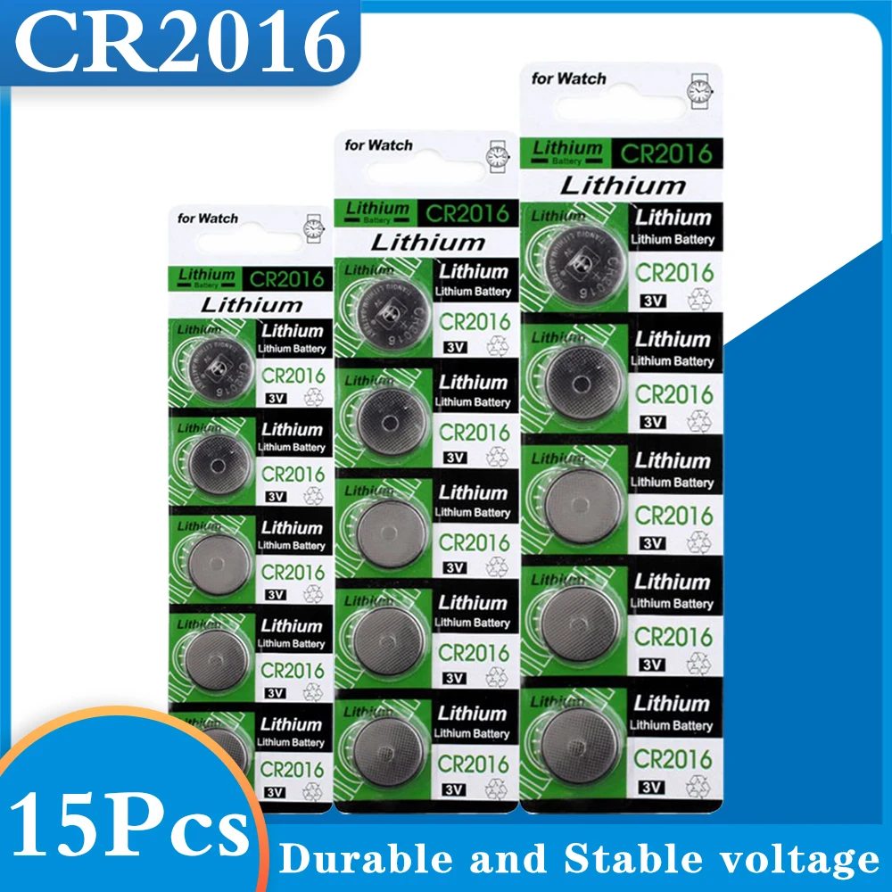 Кнопочные батареи 15 шт. CR2016 LM2016 BR2016, батарея для монет 3 в CR 2016 для часов, компьютера, пульта дистанционного управления, калькулятора