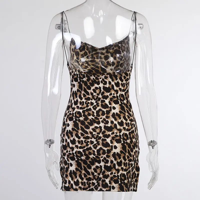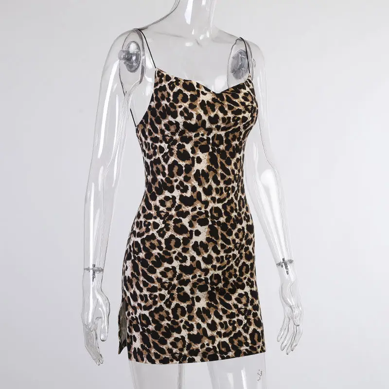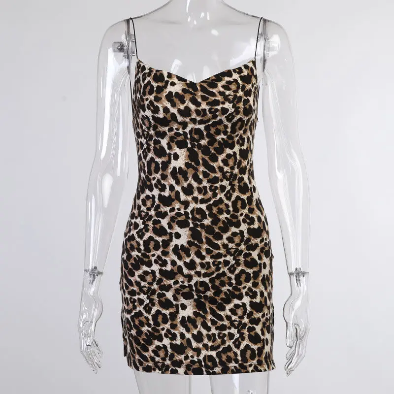 Европейская и американская жареная уличная юбка с леопардовым принтом, сексуальное платье на бретелях, сексуальное платье с открытой спиной