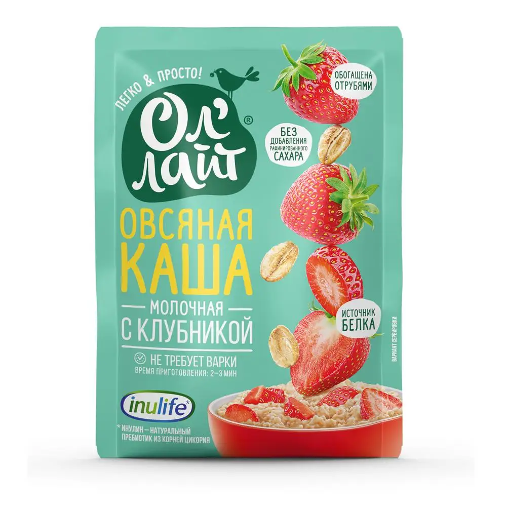Каша быстрого приготовления Ол'Лайт овсяная с клубникой 40г по 22шт