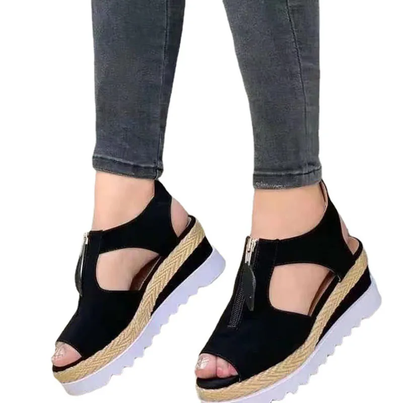 2021 летние женские сандалии женская обувь на толстой подошве; Модная женская обувь на танкетке, с открытым носом, обувь на высоком каблуке в стиле Женская Повседневная застежка-молния женская обувь размера плюс