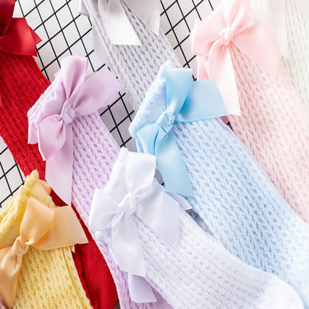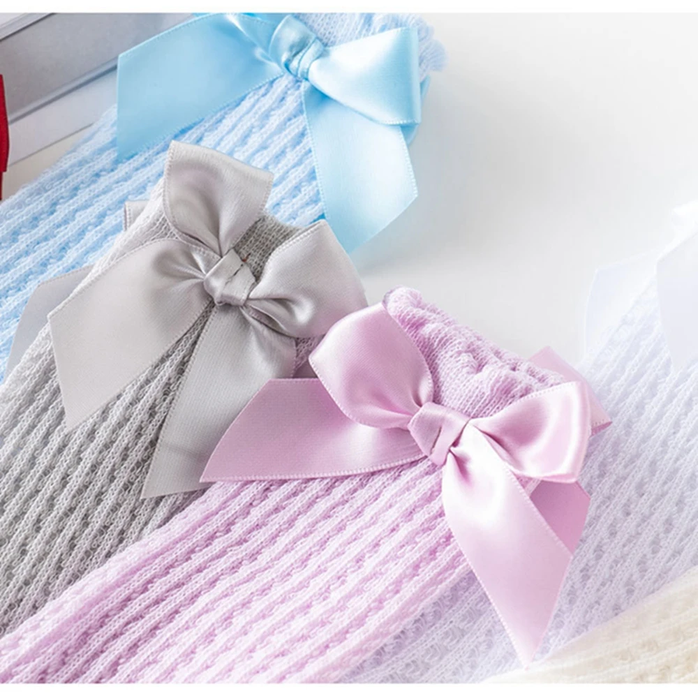 Летнее платье для маленьких девочек, носки для малышей, с бантом, длинные носки до колена Детские гольфы, детские мягкие хлопковые платья с сеточкой с испанский Стиль детей От 0 до 2 лет, носки из дышащей ткани
