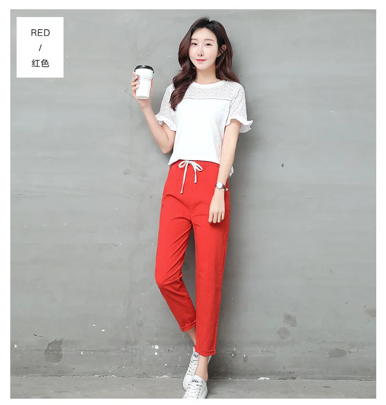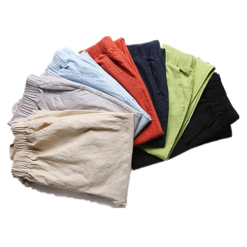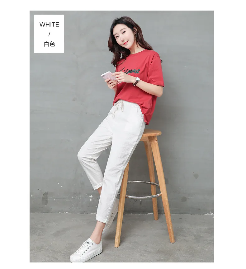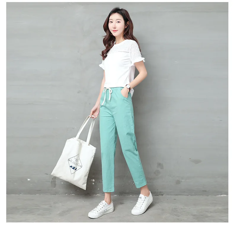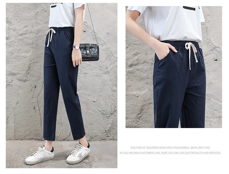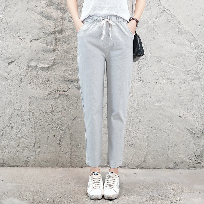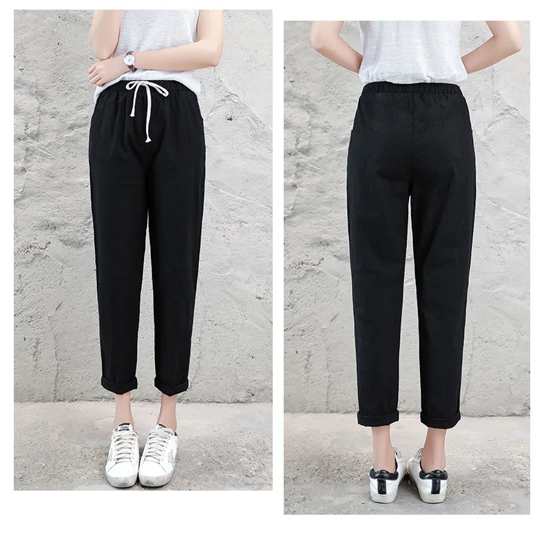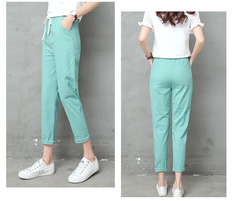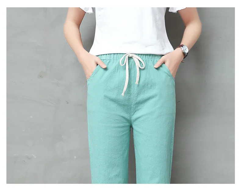 Женские Брюки-Капри из хлопка и льна, однотонные шаровары до щиколотки с эластичным поясом, брюки-карандаш, весна-лето 2021