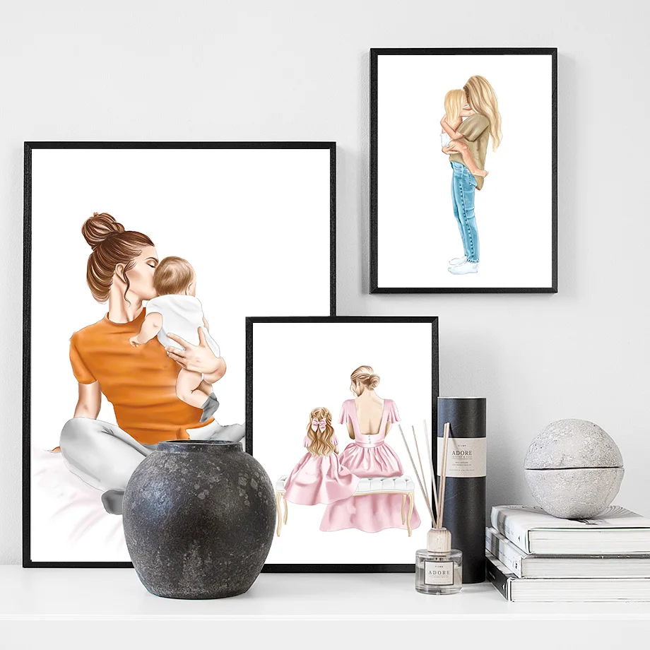 Постеры и печать на холсте Мама Любовь дочь сын Принцесса Принц поц...