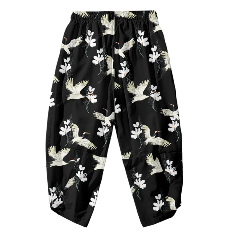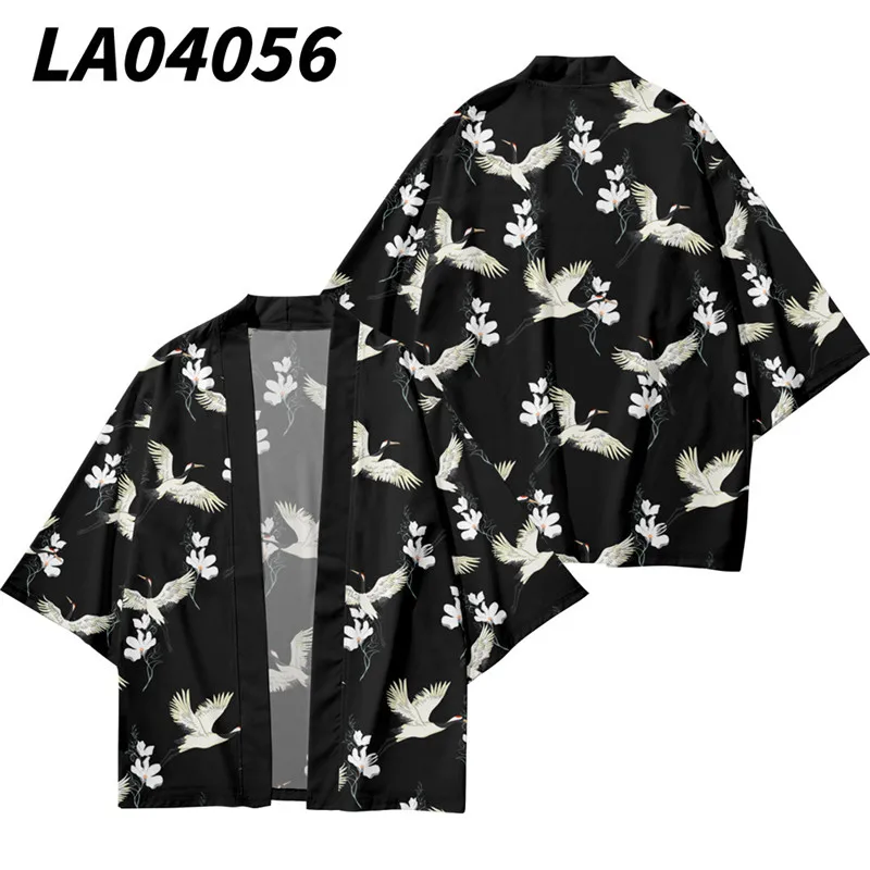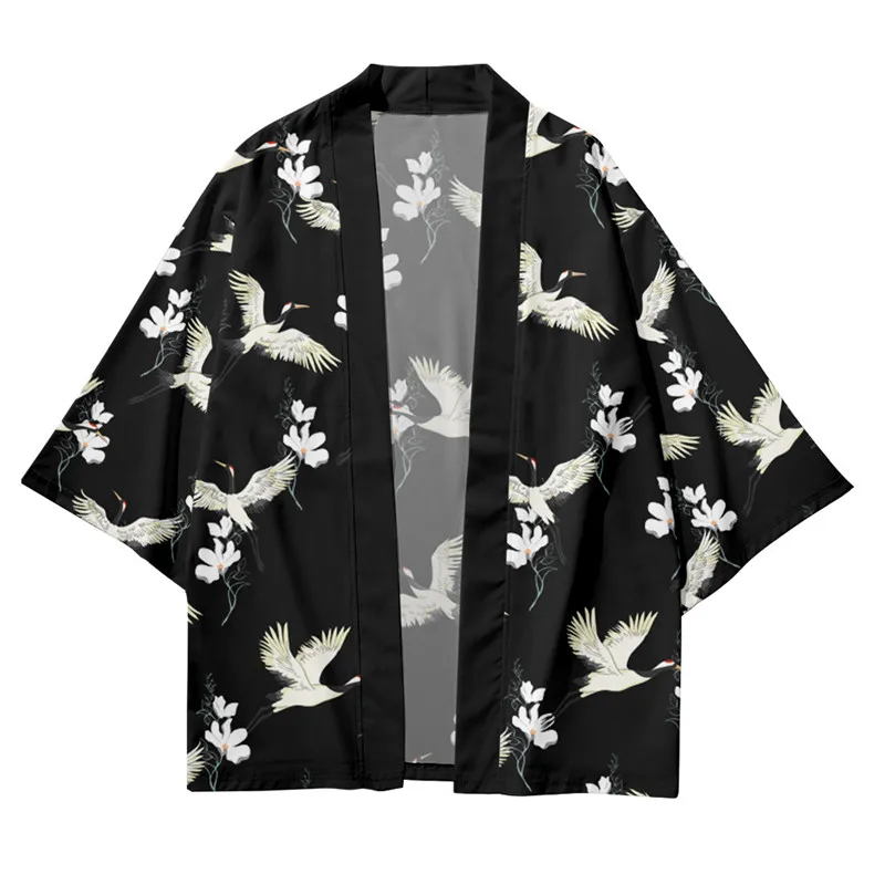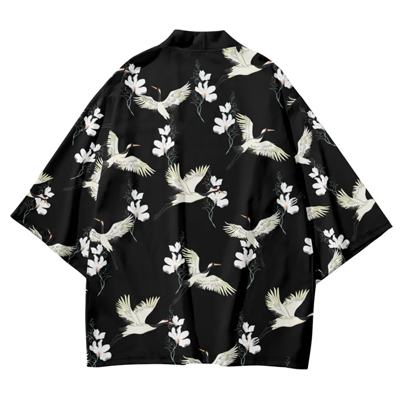 Кимоно мужское с цветочным принтом журавлей, кардиган в традиционном японском стиле, свободный тонкий повседневный комплект, пальто и штаны, азиатская одежда в стиле Харадзюку