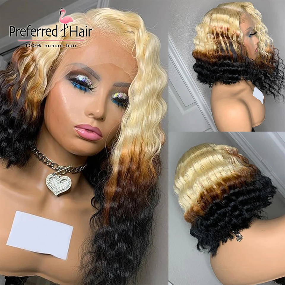 Предпочтительный боковой пробор парик с глубокой волной предварительно выщипанный 13x 4 кружевной передний парик бразильские волосы Remy Омбре блонд человеческие волосы парики для женщин