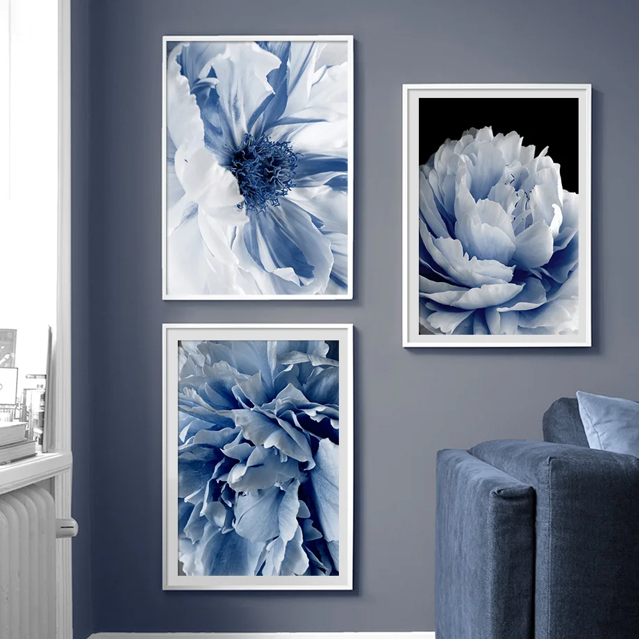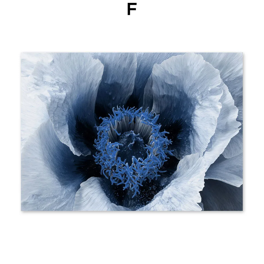Настенная картина с изображением синего одуванчика, пиона, пальмового листа, росписи на холсте, скандинавские плакаты и принты, настенные картины с растениями для украшения гостиной