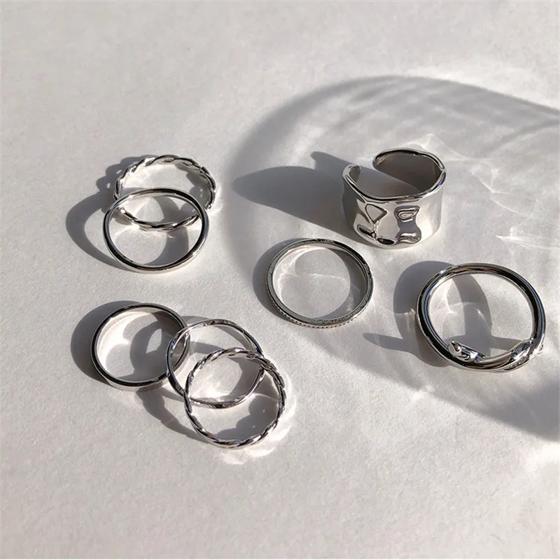 Набор женских колец, 7 шт.компл., в минималистическом стиле