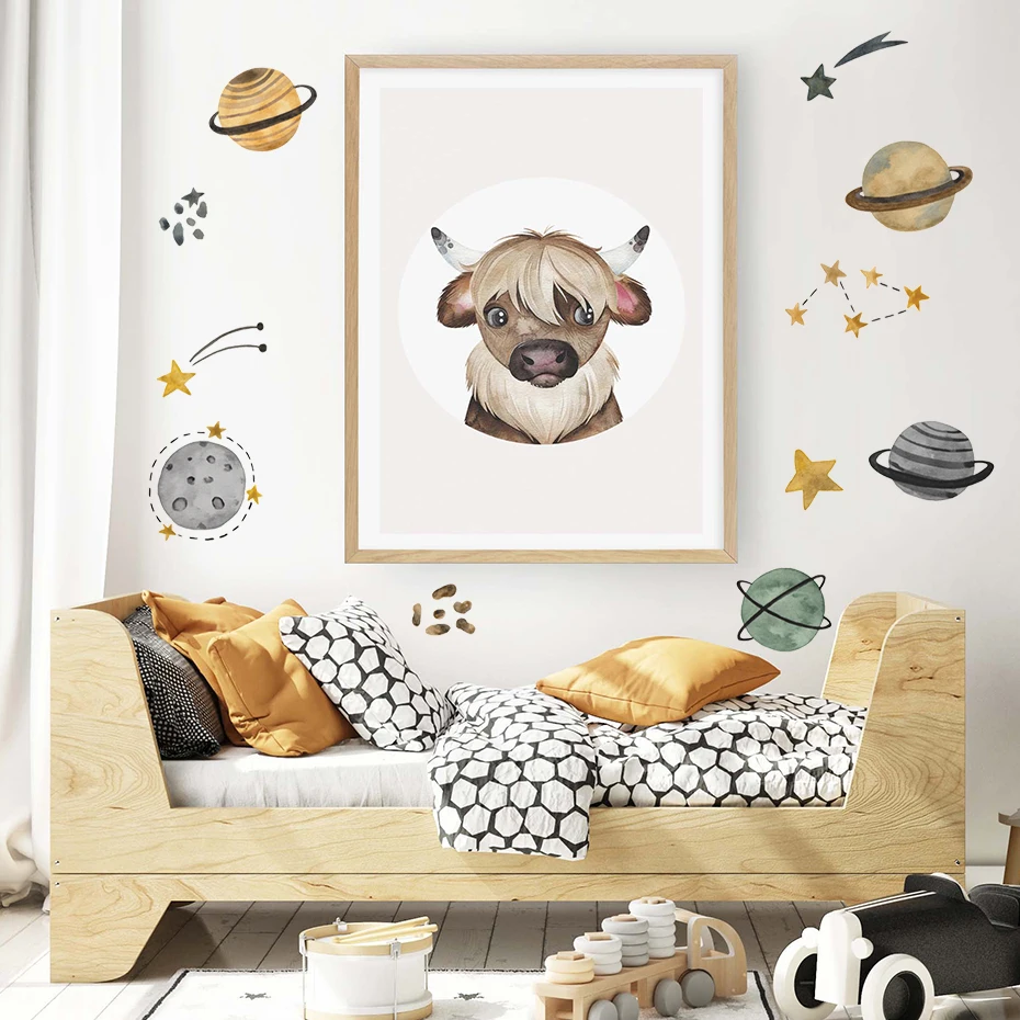 Мультяшные звёзды, Детская Наклейка, акварель, Съемный Детский пост...