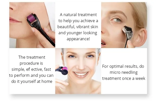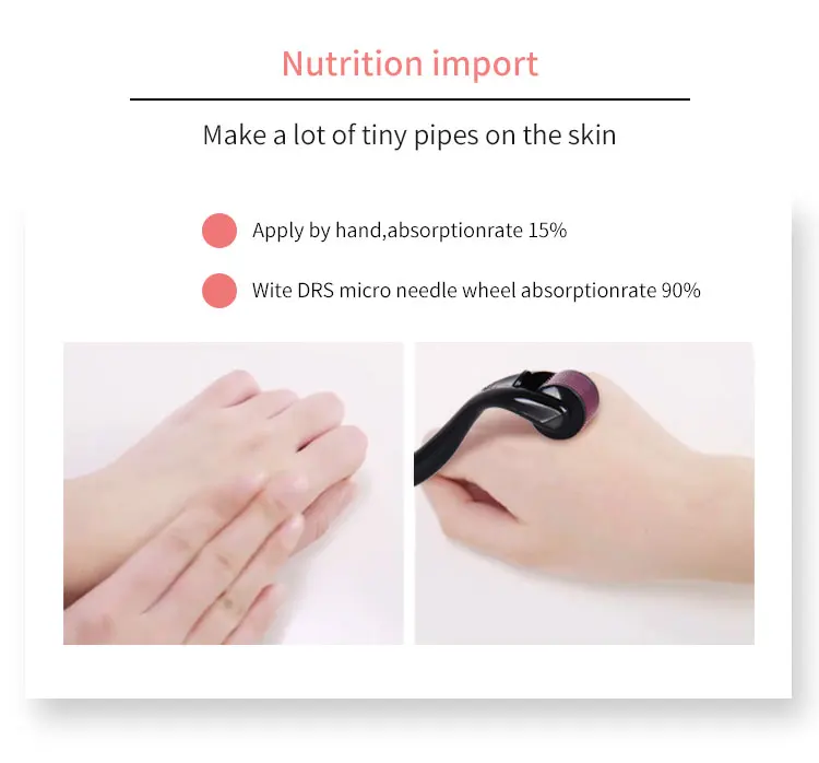 Отличное качество микро игольчатая роликовая система.Эффективный антивозрастной инструмент.Уменьшает общие признаки старения, такие как морщины, морщины для лица и т. д.Повышает кровообращение и делает вашу кожу упругой и упругой.Эффективно улучшает шрам, растяжки, акне и т. д.Также может быть нанесен на весь корпус.Изготовлен из безопасного материала, дружелюбный и безвредный.Никаких побочных эффектов на человеческое тело, пожалуйста, будьте уверены в использовании.