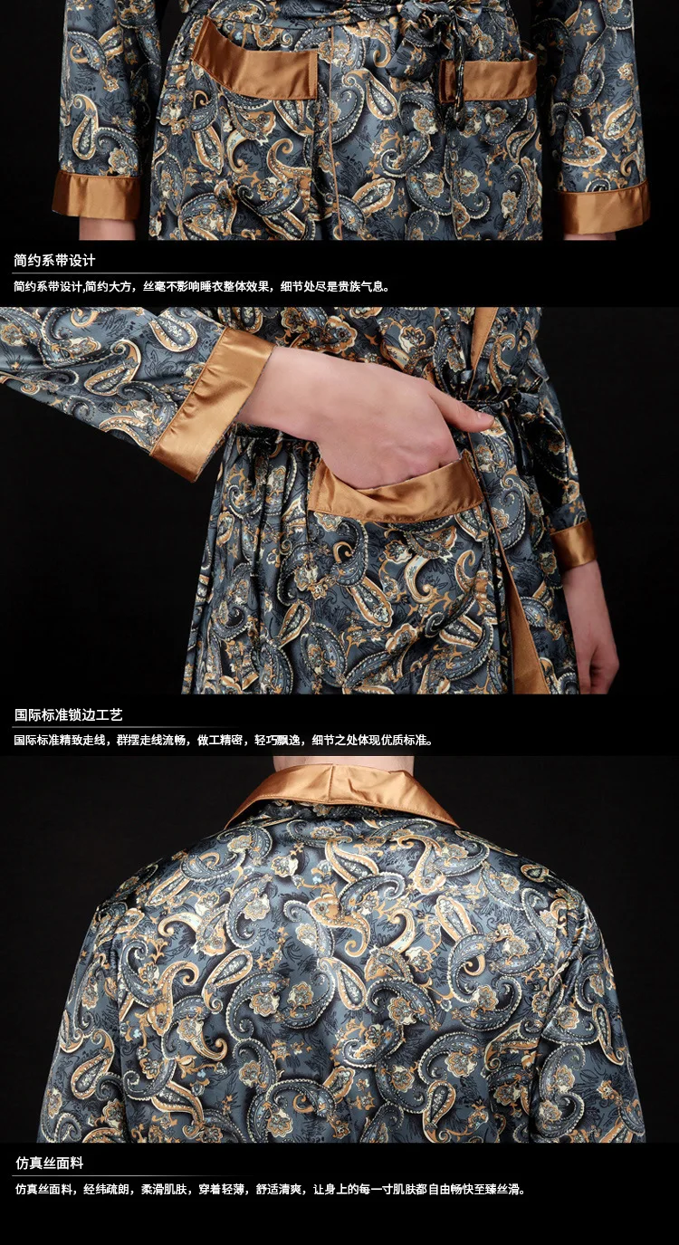 Шелковые халаты с принтом пейсли для мужчин, атласная одежда для сн...