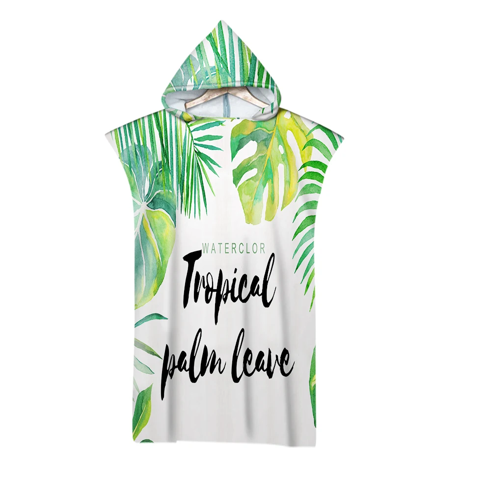 Листья тропической пальмы узор на открытом воздухе взрослых с капюшоном пляжное полотенце-пончо халат пляжные полотенца Для женщин мужской Халат AHT4
