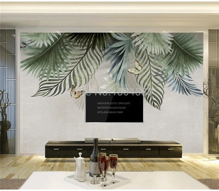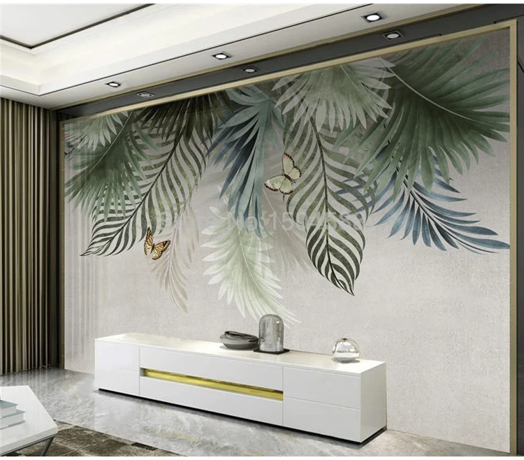 Настенные 3D обои ручной росписи, красивые листья, растения, цветы и птицы, фреска, для гостиной, фона под телевизор, 3D фрески