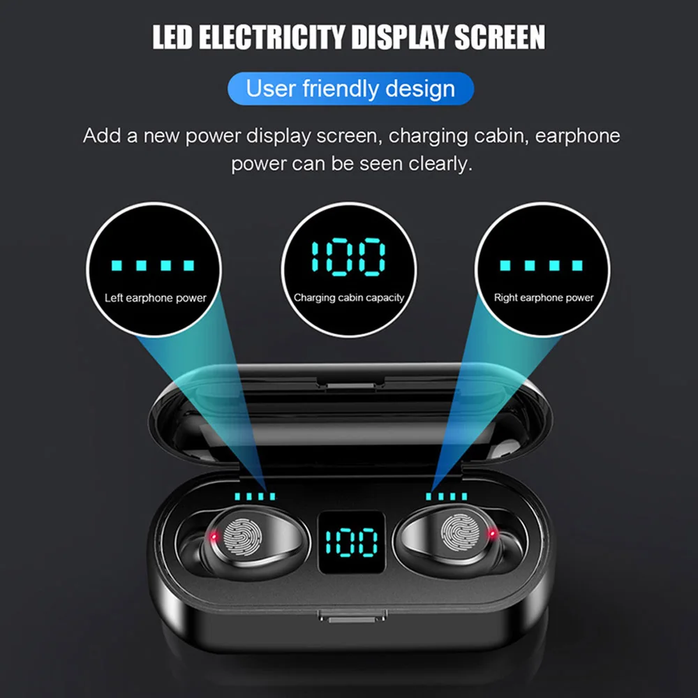 Беспроводные наушники TWS с сенсорным управлением, Bluetooth-наушники со светодиодным дисплеем, спортивные наушники-вкладыши с внешним аккумулятором 2200 мАч, игровая гарнитура