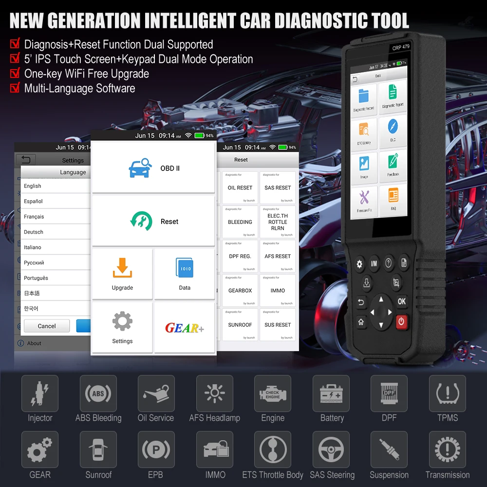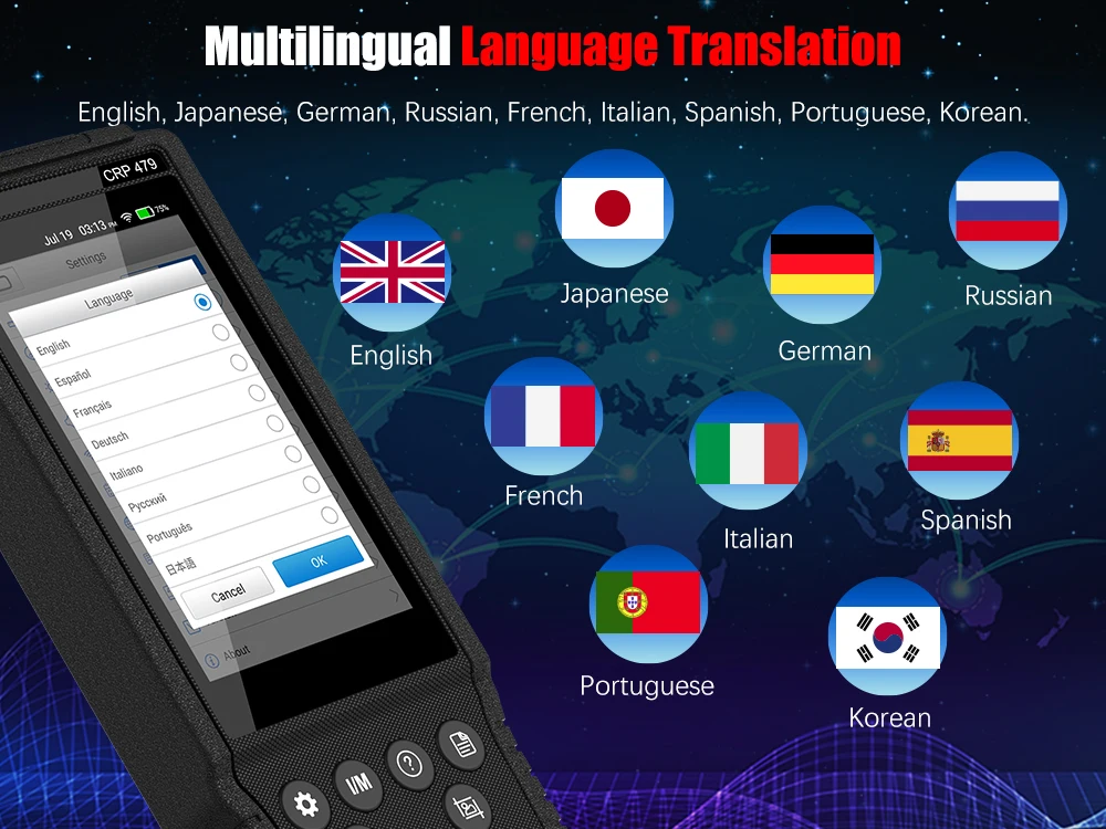 LAUNCH CRP479 OBD2 сканер поддерживает язык: