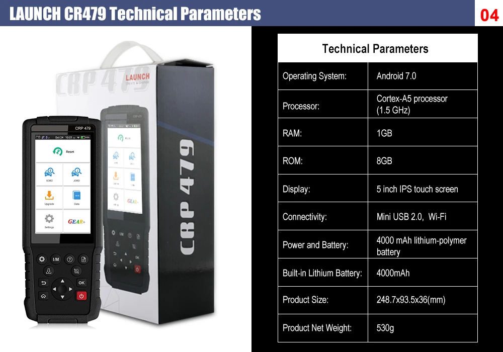 Launch OBD2 Code Reader CRP479 Технические параметры: