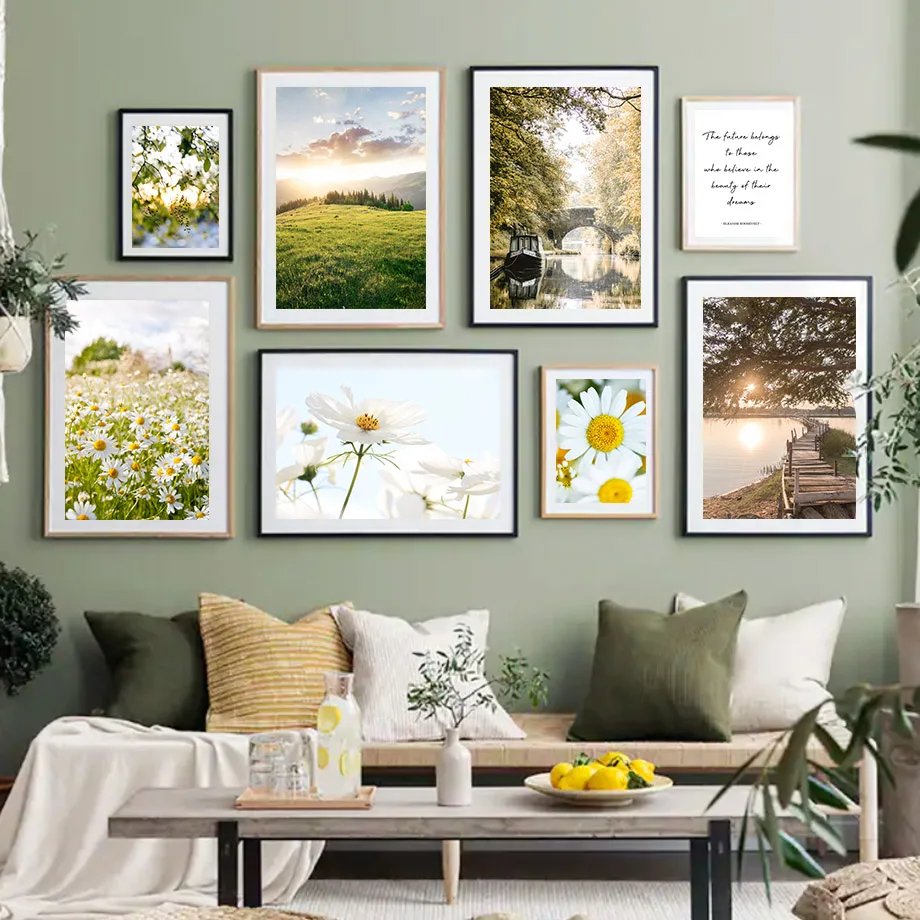 Плакаты и принты скандинавских цветов мост река Дейзи девушка восхо...
