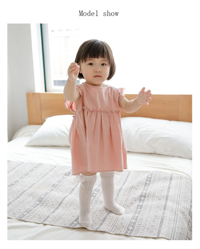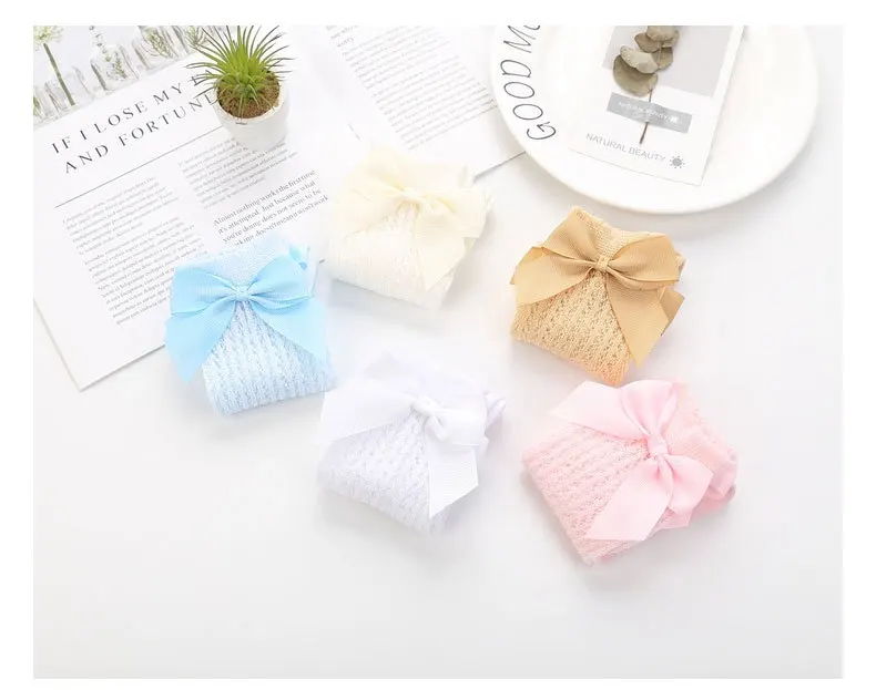 Летние носки для новорожденных девочек сетчатые детские носки Длинные мягкие хлопковые Гольфы с бантом для маленьких девочек носки для новорожденных, детей