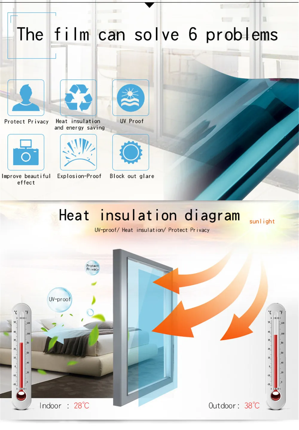 Цвет: серебристый, черный, серебристый, синий, коричневый, серебристый Тип: виниловый самоклеющийся Функция: теплоизоляция, анти-УФ, защита конфиденциальности, защита от взрыва Новый тип солнечной пленки-это высококачественная зеркальная оконная пленка, предназначенная для применения на строительных окнах. Неклеевой оттенок окна обеспечивает отличную конфиденциальность в течение дня, так как он ярче снаружи. Пленка для окна зеркала не обеспечивает конфиденциальность в ночное время, когда светильник находится внутри дома. Он обеспечивает 78% уменьшение тепла и блокирует до 98% вредных УФ-лучей, одновременно уменьшая тепло, отражая солнечные лучи снаружи летом и сохраняя тепло внутри зимой, вы будете чувствовать себя комфортно дома или в офисе каждый день.