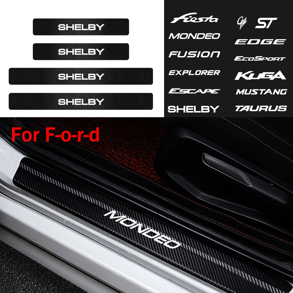 4 шт., виниловые наклейки на пороги автомобиля Ford Fiesta ST Ecosport Kuga Fusion Edge TAURUS Mustang Ghia