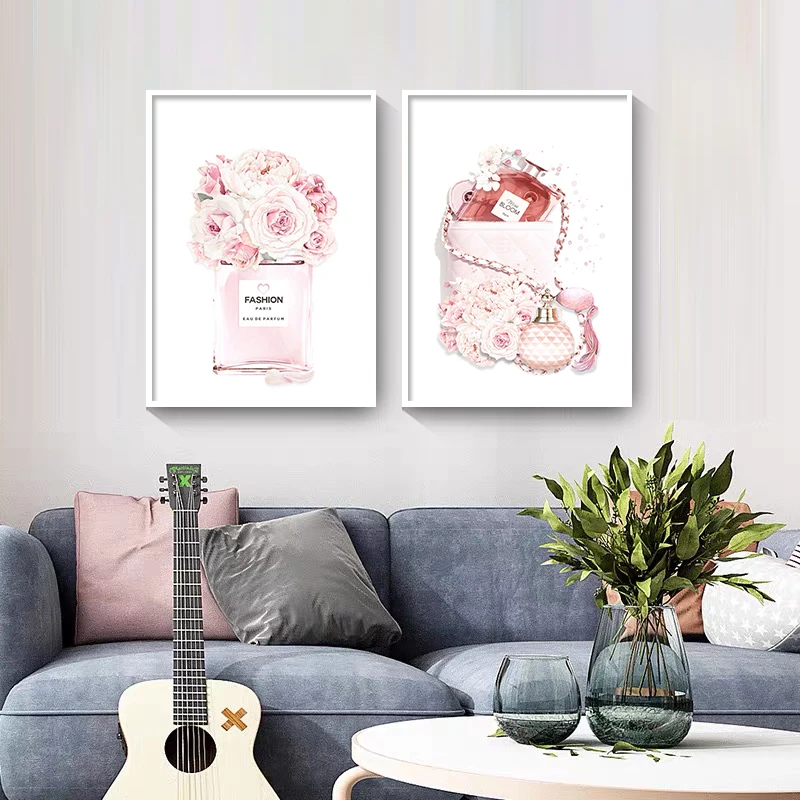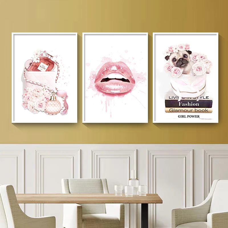 Картина на холсте с изображением милой девушки, скандинавские постеры и принты с розовыми цветами и ресницами для макияжа, парфюма, книга с рисунком, домашний декор