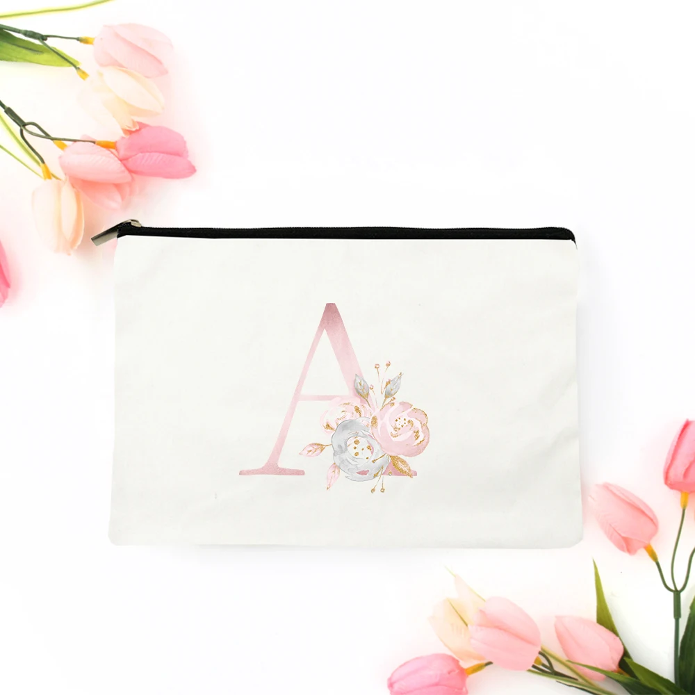 Розовый цветочный алфавит, A-Z, с принтом, косметичка на молнии, сумка для макияжа, органайзер, косметичка, свадебный подарок для вечеринки, дорожный Портативный кошелек