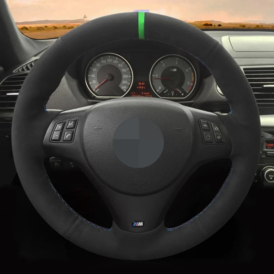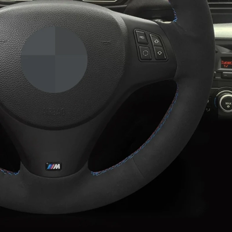 Чехол рулевого колеса автомобиля DIY ручной работы черная замша, без застежек, для BMW M спортивные M3 E90 E91 E92 E93 E87 E81 E82 E88 X1 E84