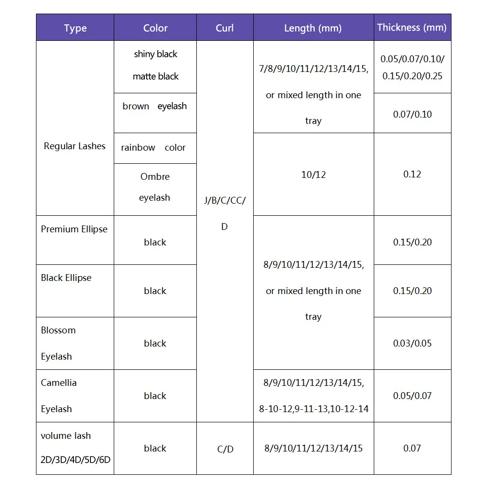 1. Какой тип и размер ресниц мы можем предоставить для частных этикеток?