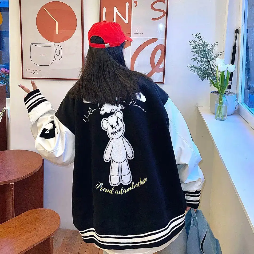 Мужская бейсбольная куртка в американском стиле, демисезонная летная куртка для женщин и пар с маленьким медведем, брендовые японские куртки в стиле хип-хоп, 2021