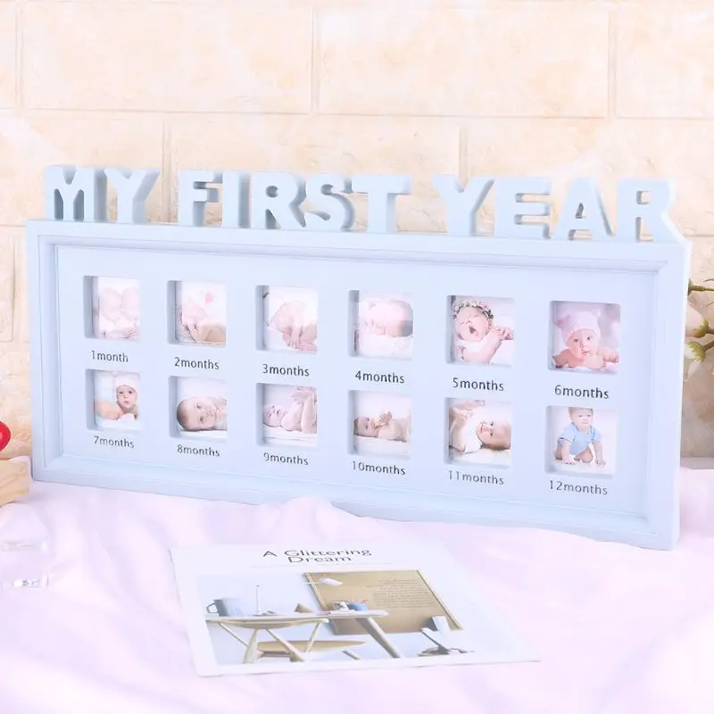 С возможностью креативного самостоятельного выбора между 0-12 месяцев "Мой первый год" фотографии Дисплей Пластик фоторамка Сувениры память для детей Рост памяти подарок