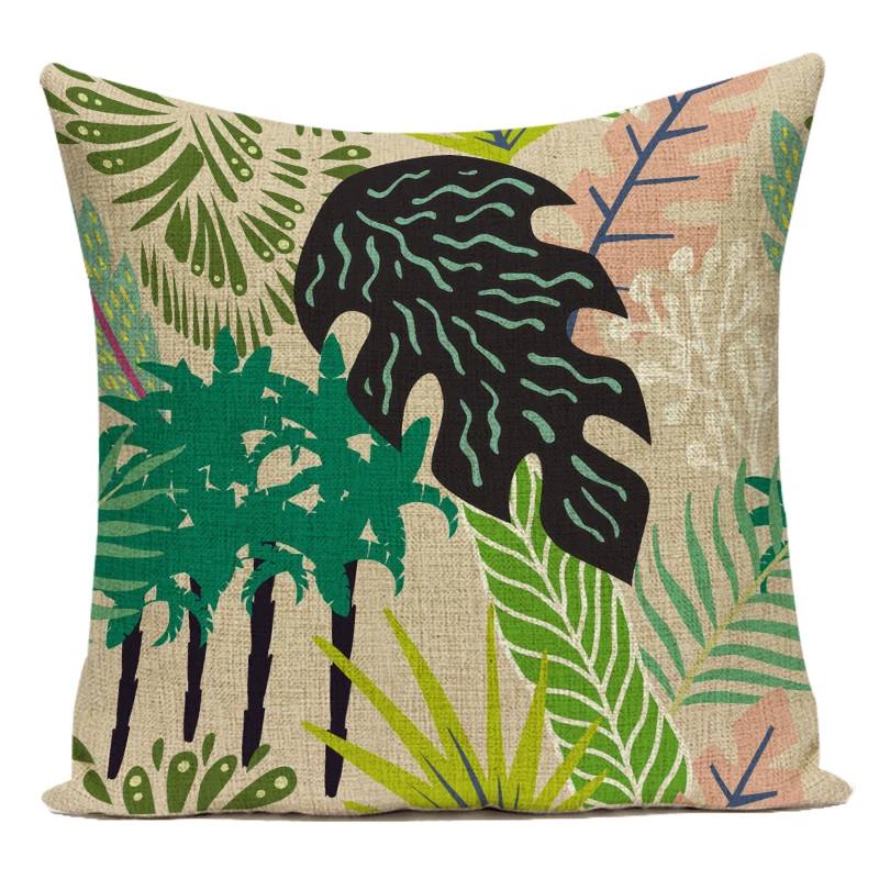 Декоративные подушки из полиэстера, тропические зеленые растения, л...