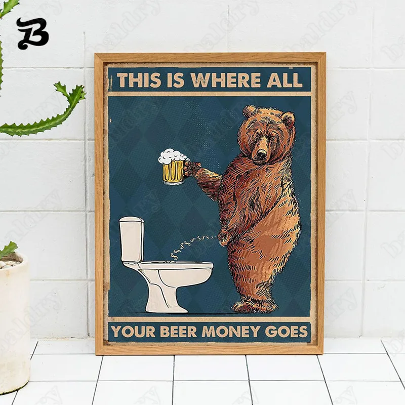 Постер забавное пиво домашнее украшение питьевой медведь винтажная Картина на холсте Настенная картина для рисования картины для ванной комнаты туалета Настенный декор