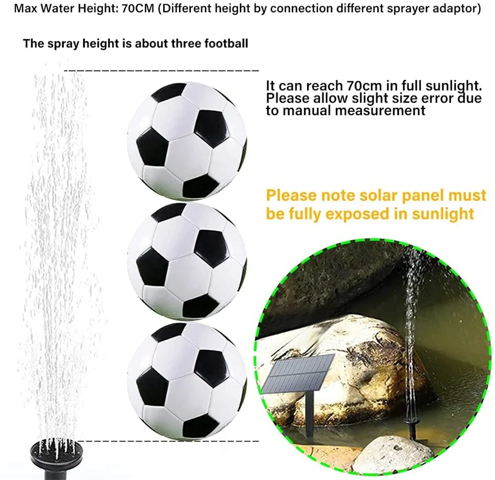Посылка входит 4 насадки 1 х Руководство пользователя 1 х мешочек с фитингами 1 х Солнечный насос для фонтана