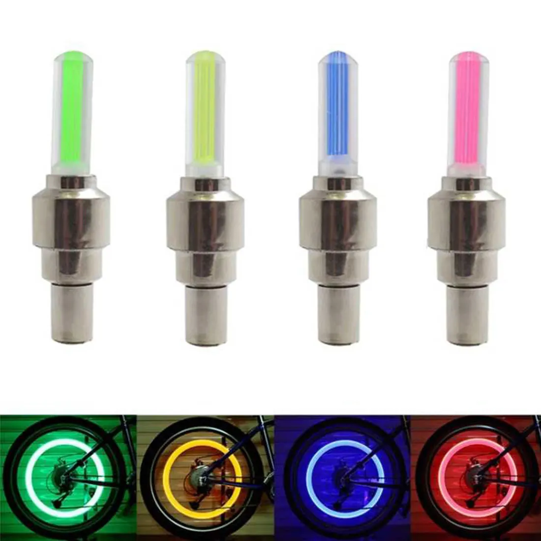100% новый и высококачественный Подходит для клапанов США и Великобритании Универсальная установка, простая установка, без специальных проводов, легко устанавливается и снимается. Подходит для большинства клапанов дорожных и горных велосипедов. Яркий светодиод включается во время остановки автомобиля. Серебряный корпус со сверхъяркими светодиодными лампами с длительным сроком службы. Освещение повышает видимость в ночное время и в плохую погоду для обеспечения безопасности. Водонепроницаемый, ударопрочный.Характеристики: