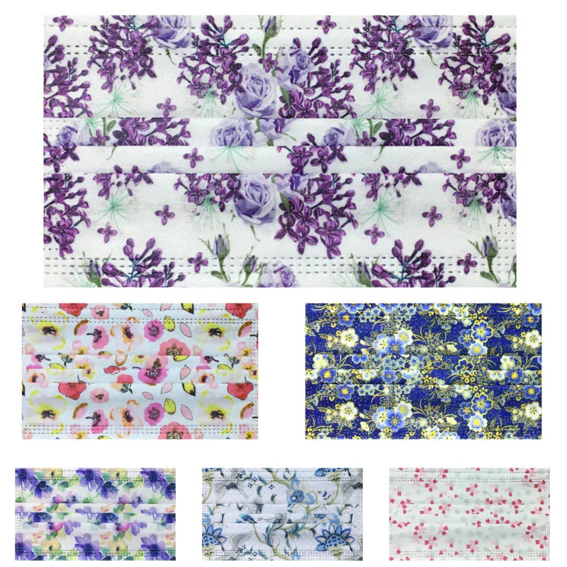 1050 модные женские туфли с цветочным принтом уход за кожей лица щит маски для 3-Слои из нетканого материала для взрослых пыли одноразовые Цветочный принт Mascarillas Ninos маска
