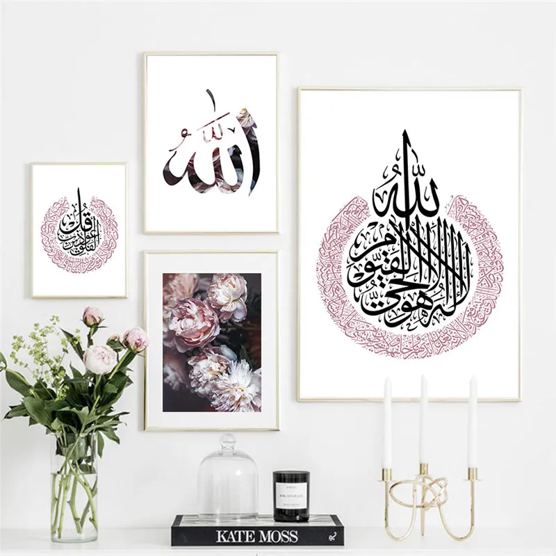 Постер с фиолетовыми цветами, настенная живопись, исламский мусульманский стиль с принтом с цитатой, домашний минималистский декор для гостиной, декоративная картина