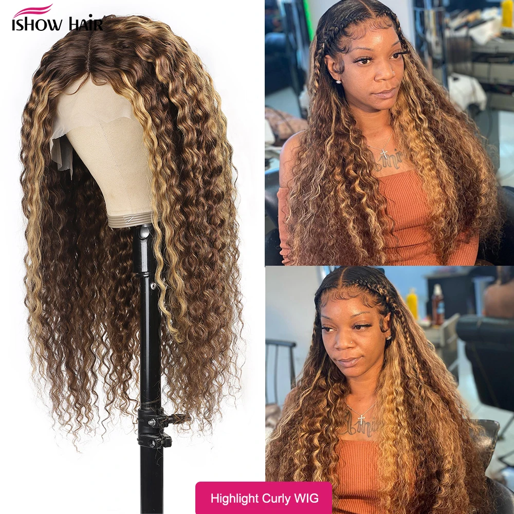 Ishow хайлайтер свободная глубокая волна фронтальный парик прозрачные кружевные передние человеческие волосы парики для женщин P4 27 цветные человеческие волосы с эффектом омбре парики