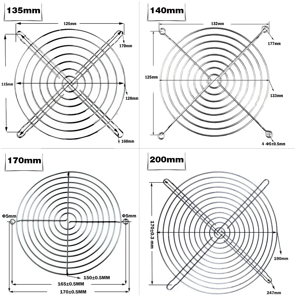Защитная пленка для вентиляторов постоянного тока из серебристого металла, 30405060708090120135140170200 мм, 5 шт.