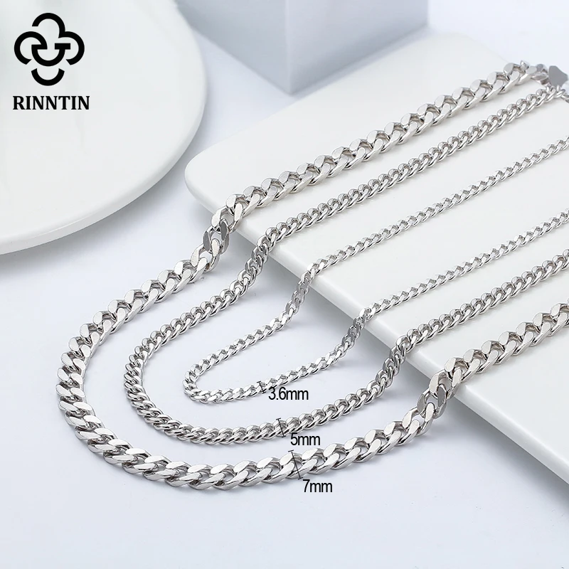 Rinntin в итальянском стиле 925 стерлингового серебра 3,6 мм с алмазной огранкой кубинской цепочка ожерелье для женщин и мужчин, серебрянная шейка цепи ювелирные изделия SC36