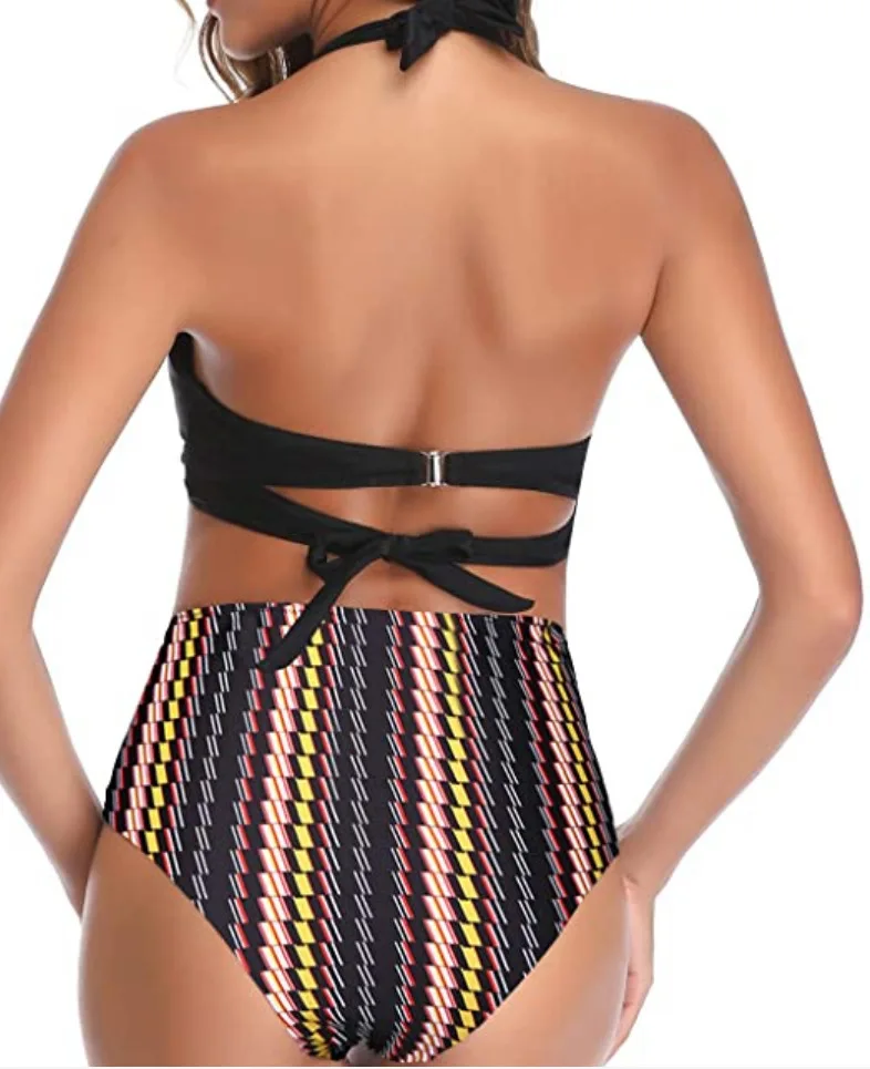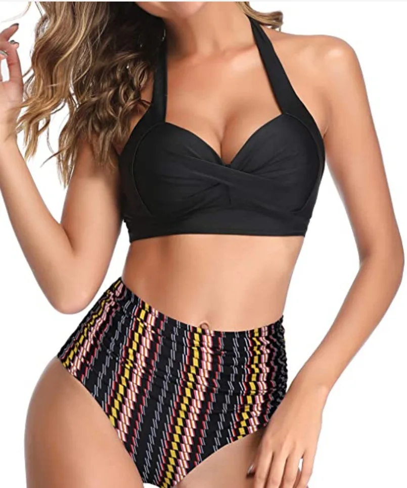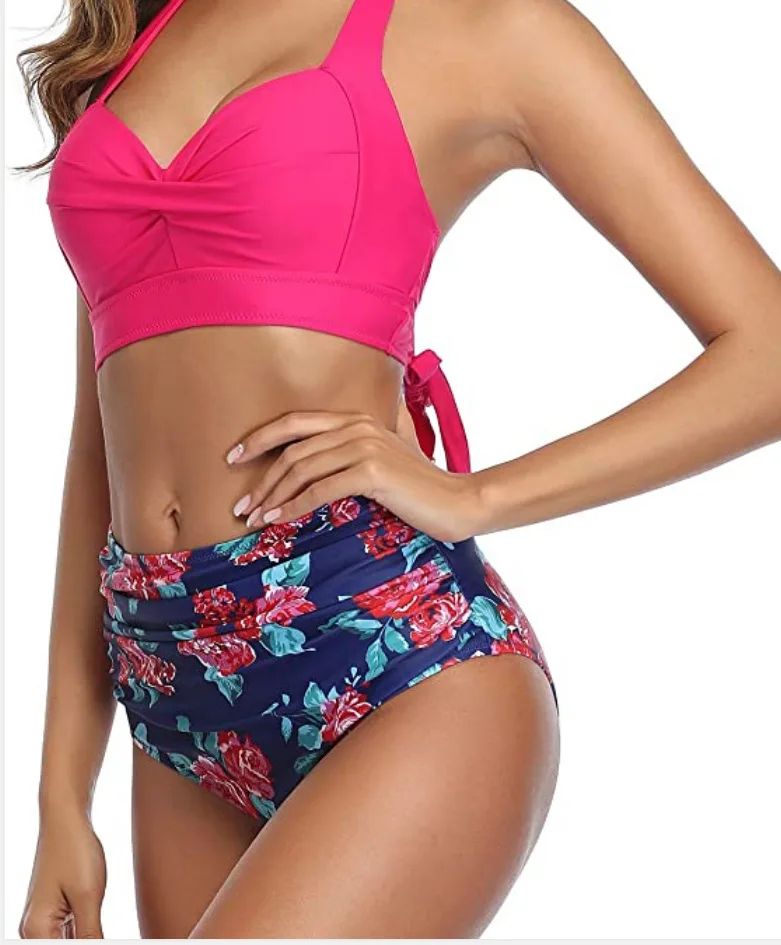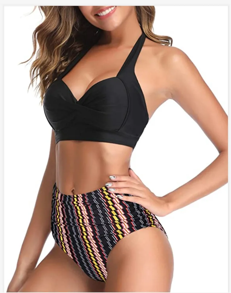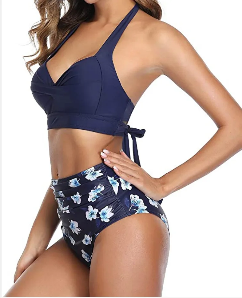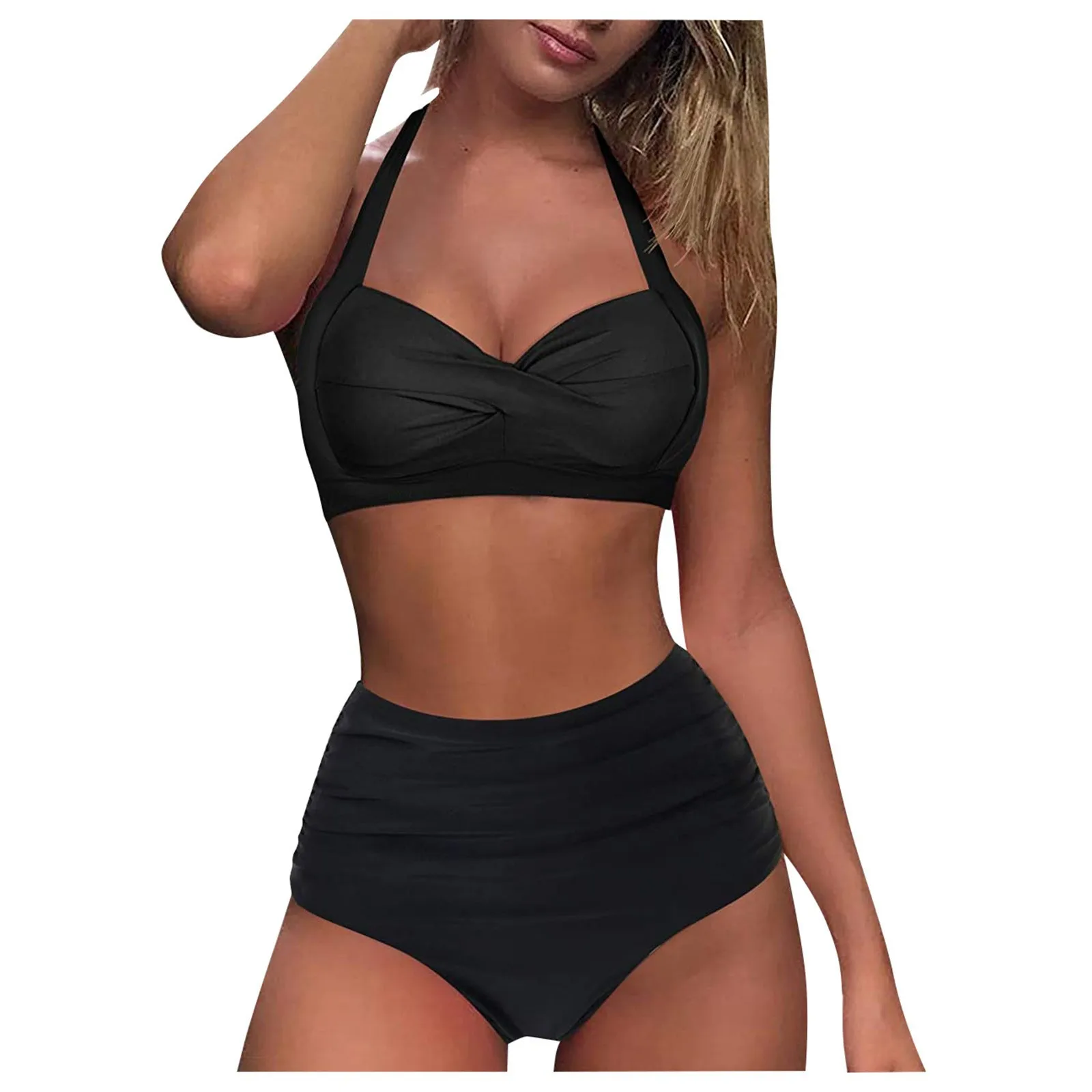 Бикини с высокой талией и вырезами на ногах, с плиссированной передней панелью, подчеркивающей фигуру, скрывает недостатки, которые вы не предпочитаете показывать.