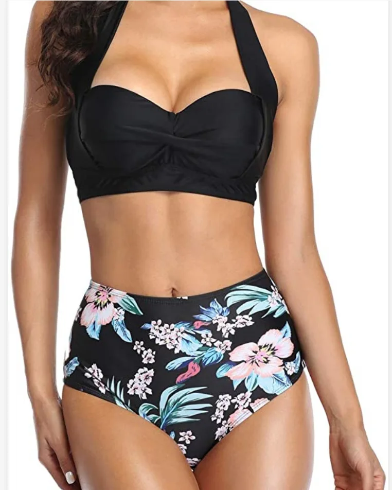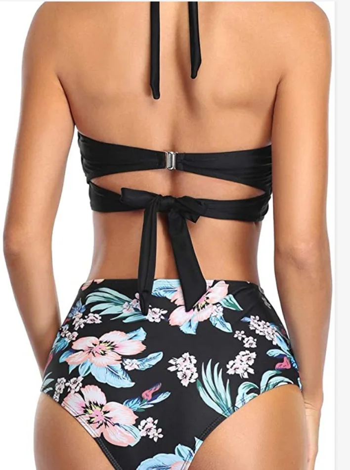 Черный ретро-топ с тропическими принтами, купальные костюмы делают вас потрясающими во время пляжного отдыха, в бассейне или на Гавайях и т. д.