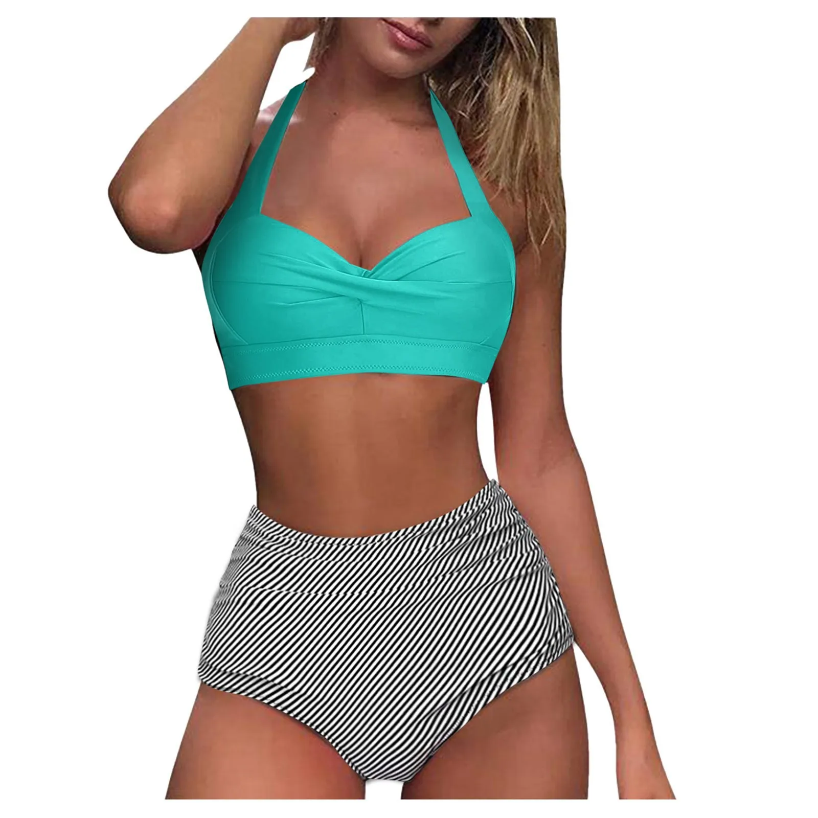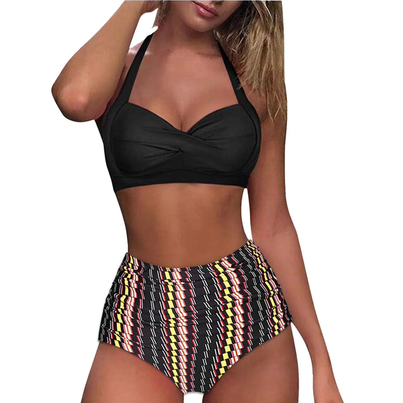 2021 Ретро бикини-танга Винтаж купальник из двух частей Высокая Талия сексуальный пуш-ап, купальник, Для женщин ванный комплект пляжной одежды размера плюс 2XL