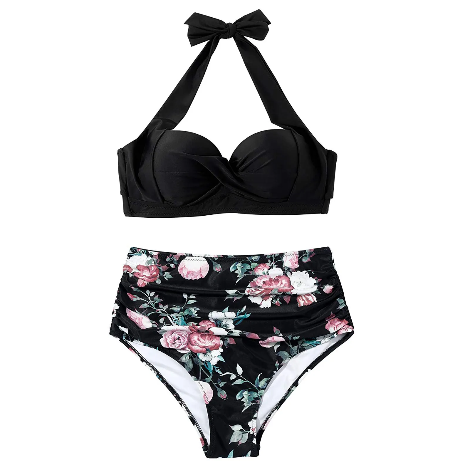 Название: 2021 Ретро бикини-танга, винтажный купальник из двух частей с высокой талией, сексуальный пуш-ап купальник, женский купальный костюм, пляжная одежда размера плюс 2XL, Maillot Trajes De Bano Bain, Прямая поставка