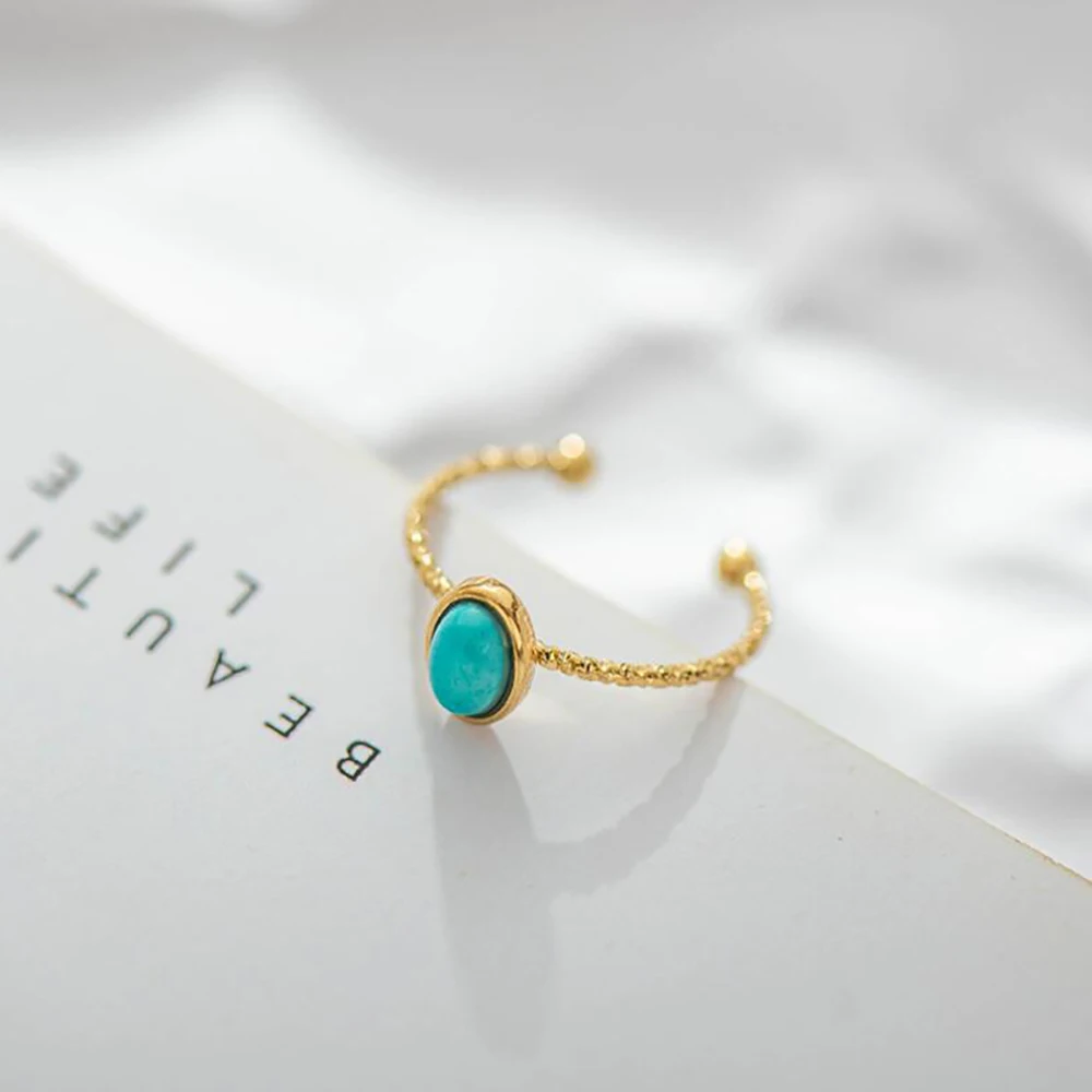 Нержавеющаясталь золото бирюзой Провод 16-17 мм Для женщин, кольцо на палец, ювелирное изделие в подарок для Него
